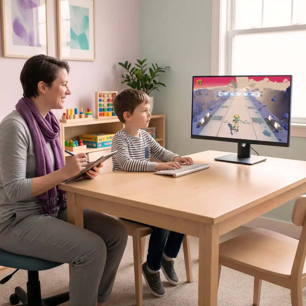 I serious game integrati offrono attività brevi e calibrate sull’età per l’intervento neuro-psicomotorio.
