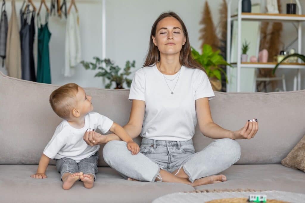 Un esempio semplice: dopo aver messo a letto tuo figlio o tua figlia, concediti cinque minuti di tranquillità sul divano, senza telefono né televisione. Chiudi gli occhi, ascolta il tuo respiro e rimani nel presente: ti aiuterà a lasciare andare i pensieri e le preoccupazioni della giornata.