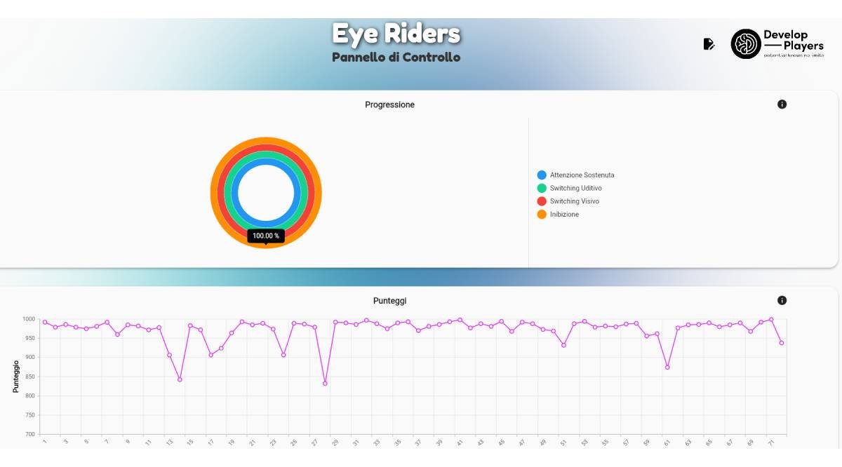 Eye-Riders è un gioco  digitale pensato per il potenziamento dell’attenzione nei bambini e adolescenti con ADHD e DSA. Attraverso sessioni brevi e mirate, basate su studi scientifici, aiuta a migliorare le funzioni esecutive come attenzione visiva, uditiva, flessibilità cognitiva e inibizione, rendendo il percorso di crescita più semplice e motivante.